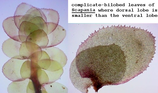 | Plagiochila undata from Cane Creek Canyon Nature Preserve, Colbert Co., Alabama showing two-ranked leaves | click image to enlarge |